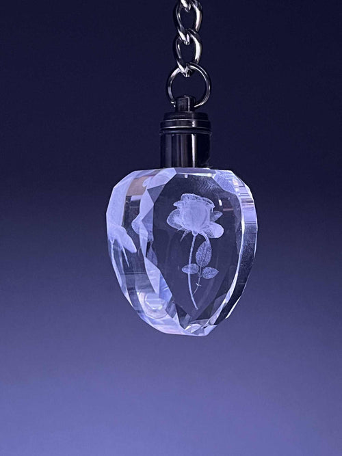 Podświetlana zawieszka z motywem kryształowego serca z różą