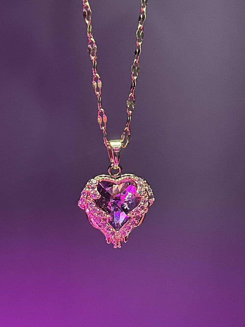 Naszyjnik z zawieszką w kształcie serca i fioletowym kryształem
